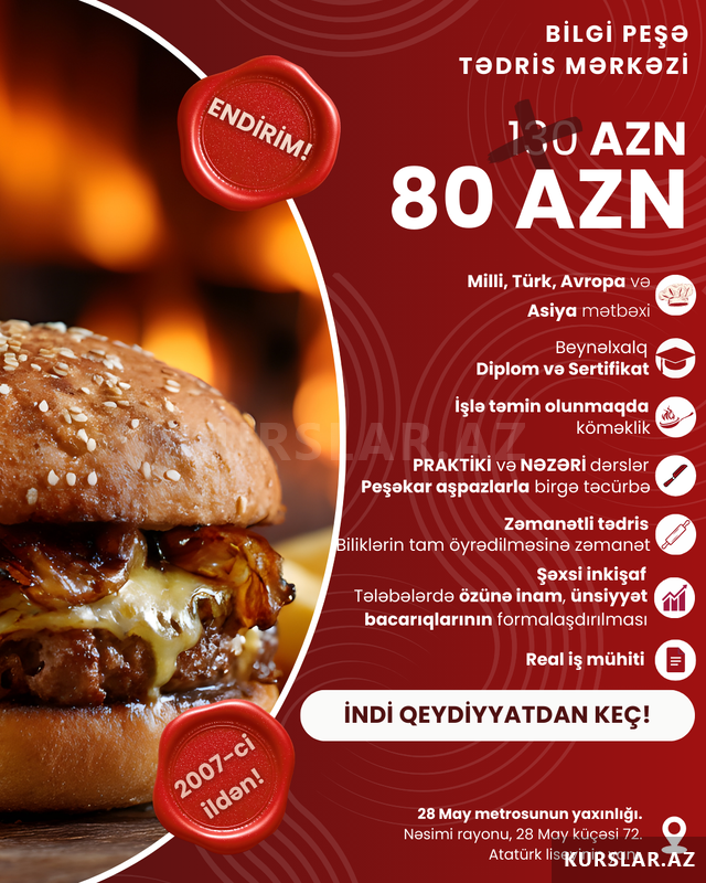 * Kursu bitirənlərə diplom və sertifikat təqdim olunur