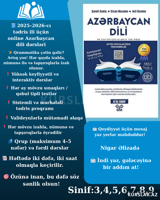 Azərbaycan dili üzrə biliklərinizi möhkəmləndirmək və yazı, oxu, qrammatika sahəsində inamla irəliləmək istəyirsinizsə, bu dərslər tam sizə uyğundur. Fərdi yanaşma ilə keçirilən proqram həm şagirdlərin, həm də valideynlərin gözləntilərinə cavab verəcək səviyyədə hazırlanmışdır.
