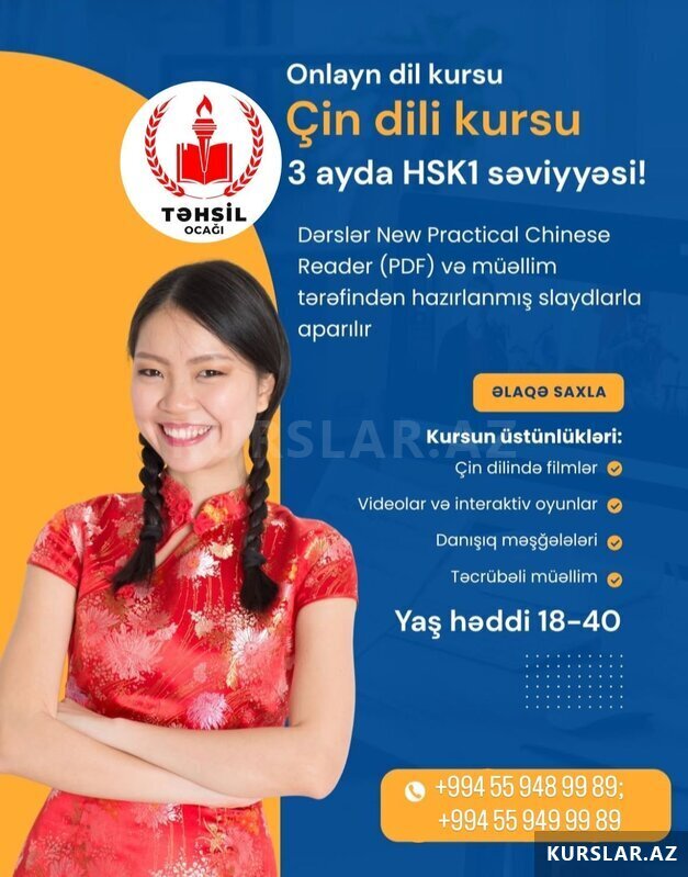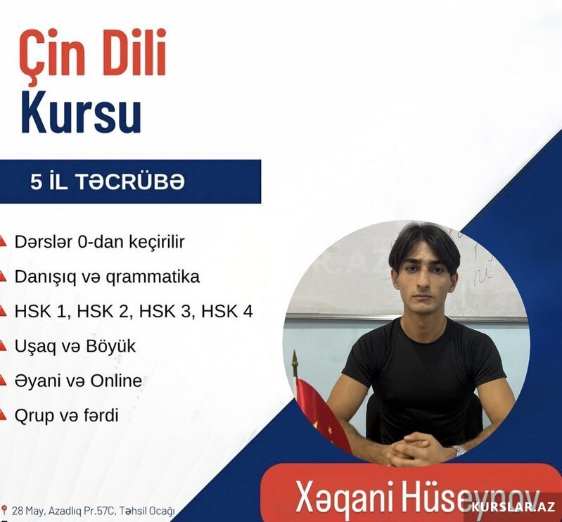 - Çin dili HSK1 - HSK6 səviyyələri üzrə mərhələli öyrədilir