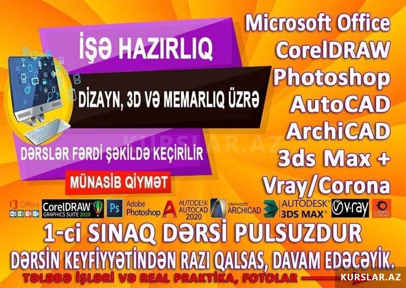 Peşəkar karyeraya doğru inamlı addım atmaq istəyirsinizsə, dizayn, ofis və memarlıq sahəsində işə hazırlıq kursu sizin üçün ən doğru seçimdir. 18 illik təcrübəyə malik müəllimin rəhbərliyi ilə keçirilən bu təlimdə həm nəzəri biliklər, həm də praktiki bacarıqlar qazanacaqsınız. Məqsəd yalnız proqram öyrətmək deyil, sizi real iş mühitinə tam hazırlamaqdır.