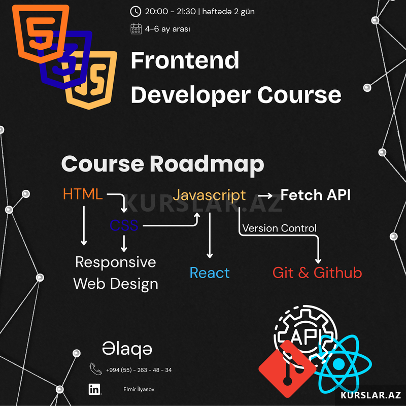 Bu təlim səni sıfırdan professional səviyyəyə aparacaq. HTML, CSS və JavaScript ilə saytların strukturunu, görünüşünü və funksionallığını sıfırdan qurmağı öyrənəcəksən.