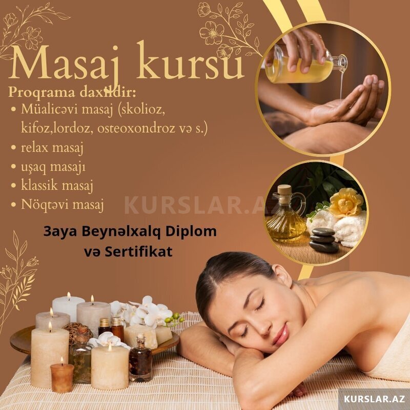 Siz masaj texnikalarının əsas prinsiplərini öyrənəcək, bədənin anatomiya və fiziologiyasını dərk edərək düzgün tətbiqlər etməyi bacaracaqsınız. Proqram çərçivəsində uşaq masajı, müalicəvi masaj, nöqtəvi masaj, klassik və relaks masaj kimi müxtəlif növlər tədris olunur.