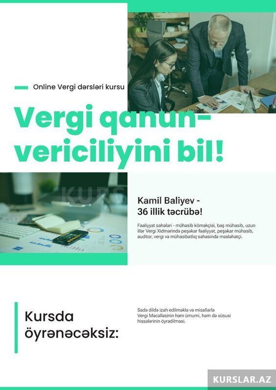 Kurs, 36 illik təcrübəyə malik, uzun illər vergi orqanlarında və özəl sektorda baş mühasib, auditor və məsləhətçi kimi fəaliyyət göstərmiş peşəkar mütəxəssis tərəfindən keçirilir. Bu proqram həm nəzəri, həm də praktiki biliklərin birləşdiyi tədris modelinə əsaslanır və iştirakçılara Azərbaycan vergi sistemini tam şəkildə mənimsəməyə kömək edir. Təlimlər əyani, online formada isə Zoom və ya Google Meet üzərindən fərdi və ya qrup şəklində keçirilir. İştirakçılar öz iş və təhsil qrafikinə uyğun olaraq səhər və ya axşam qruplarından birini seçə bilərlər. Üç ay davam edən bu kurs həftədə iki dəfə 1.5 saatlıq dərsləri əhatə edir.